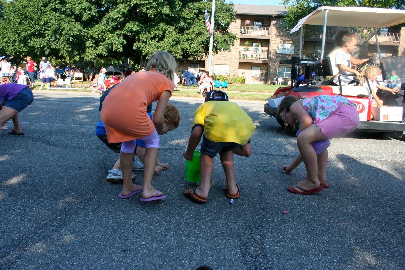 The kids had fun, but it was crazy hot. The parade was taking for.ev.er. (Thanks to the man dressed all in white.) You know it's long when the kids are asking to leave. Gotta love these Kansas summers!
