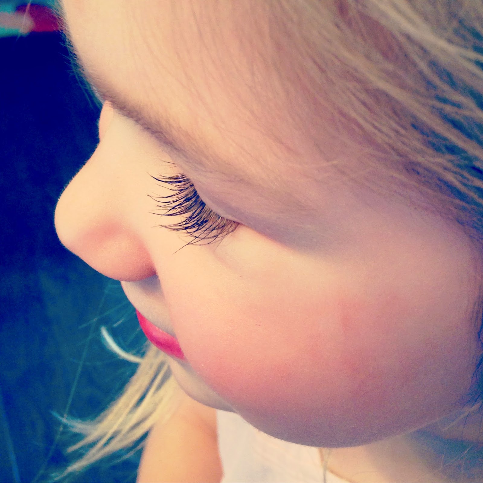 The girls are playing dress up. Gretchen's eyelashes... with mascara... Oh. My. Word.